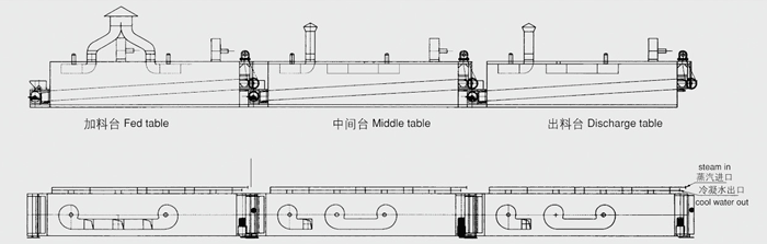 將上表中同一規格的網帶干燥機加料臺,中間臺.出料臺三臺串聯使用,保證蔬菜脫水干燥生產工藝要求.顯著提高產量,有效保證產品品質。