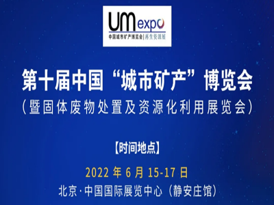 由中華全國供銷合作總社、生態(tài)環(huán)境部等相關部委聯合支持,中國再生資源回收利用協會、中國環(huán)境保護產業(yè)協會等單位聯合主辦的UM EXPO 第十屆中國“城市礦產”博覽會(暨固體廢物處置及資源化利用展覽會)(簡稱“礦博會”)、第二十屆中國國際環(huán)保展覽會(簡稱“CIEPEC”)將于2022年6月15-17日在北京中國國際展覽中心(靜安莊)同期舉辦。