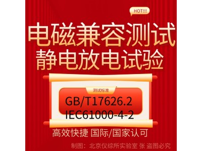 北京儀綜所電磁兼容EMC實驗室,提供靜電放電抗擾度測試服務,提供產品檢測,出具第三方檢測機構報告,具備CNAS和CMA資質。試驗聯(lián)系張工:13911260297.