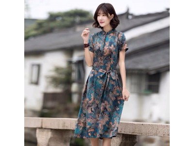 添潭盛泰真絲連衣裙以蠶絲為原料,特點是吸濕率高(5%~10%)、透氣性好、質地光滑柔軟、富有彈性、具有蠶絲天然光澤、明亮柔和。點燃纖維,燃速慢,有燒毛發氣味。抽出絲條解捻,長絲連綿不斷。真絲面料制衣穿著舒適、涼爽。