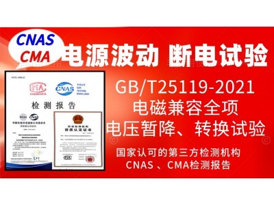在鐵路國家標準GB/T25119-2021《軌道交通機車車輛電子裝置》中,規定了機車車輛電子設備的電壓波動、斷電試驗、電源轉換、電壓暫降及短時中斷的產品試驗要求,北京儀綜所電磁兼容實驗室,具備進行這項試驗的檢測能力,出具CNASCMA檢測報告、委托型式試驗報告和例行試驗報告。