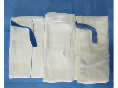 結(jié)構(gòu)及組成:I型:由脫脂紗布加工制成;II型由夾有X射線可探測組件的脫脂紗布塊加工制成,腳步均可縫制一根腹巾帶。