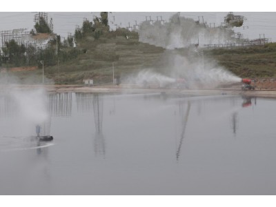 立式噴霧機(jī):架設(shè)于蒸發(fā)塘岸邊,進(jìn)行污水霧化蒸發(fā)。