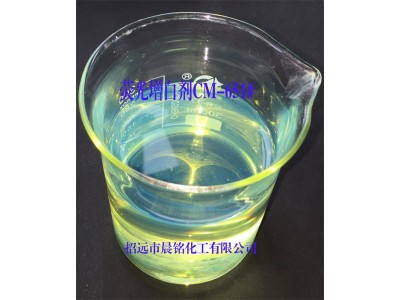 熒光增白劑CM-651,黃綠色液體,易溶于水,對酸穩(wěn)定,耐過氧化氫漂白,對天然纖維具有高的直接性。能與水以任何比例溶解。在任何條件下可以任何倍量的水溶解均勻,并能在纖維中快速均勻分散,從而保證織物質(zhì)量的穩(wěn)定。織物不易黃變。因CM-651泛黃點比較高,所以可以持續(xù)疊加,可以持續(xù)累積白度,從而達(dá)到比較高的視覺白度。