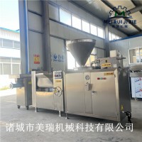 小型灌腸生產線 紅腸加工成套設備 風干腸加工流水線再后來自動化程度高了就有了電動的,就是人工來投放物料后自動灌腸的一個功能的,但是所有的腸類都需要人工來套腸衣的,也可以配備自動套腸衣器來使用,再然后就有了絞肉式灌腸機、泵浦灌腸機、液壓灌腸機、氣動定量紐結灌腸機和真空灌腸機等等的,自動化程度越來越高了,越來越節省人工的操作,接下來就有很多的選擇了。