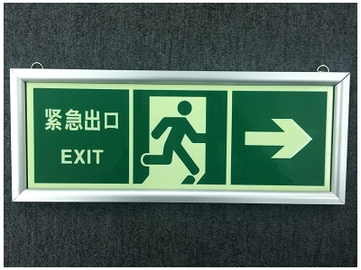 產(chǎn)品描述:1:通常采用0.41mm厚度蓄光型阻燃耐磨PVC或鋁合金板材作為基材,再表面印刷國標(biāo)綠色圖案,常用產(chǎn)品背部帶有自粘膠,方便直接黏貼于光滑干凈的墻面。
