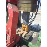 反井鉆機(jī)是通過鉆機(jī)的電機(jī)帶動液壓馬達(dá),液壓馬達(dá)驅(qū)動水龍頭,并利用液壓動力將扭矩傳遞給鉆具系統(tǒng),帶動鉆桿及鉆頭旋轉(zhuǎn),導(dǎo)孔鉆頭或擴(kuò)孔鉆頭上的滾刀在鉆壓的作用下,沿井底巖石工作面做純滾動或微量滑移。同時主機(jī)油缸產(chǎn)生的軸向拉、壓力,也通過動力頭、鉆桿作用在導(dǎo)孔鉆頭或擴(kuò)孔鉆頭上,使導(dǎo)孔鉆頭的滾刀在鉆壓作用下滾動,產(chǎn)生沖擊荷載,使?jié)L刀齒對巖石產(chǎn)生沖擊、擠壓和剪切作用,破碎巖石。