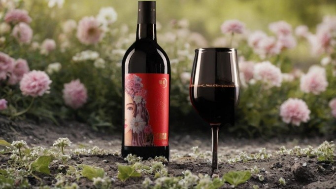 香港知名演員、歌手翁虹自創(chuàng)紅酒品牌緋虹絲路酒莊干紅葡萄酒。