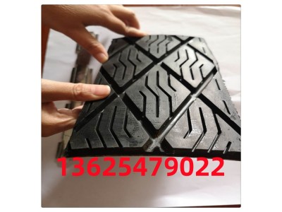 l、標準規格的包膠插片鋼板為2mm厚度冷軋鋼板,膠面厚度13mm,合計厚度15mm。強耐磨規格的包膠插片鋼板為2mm厚度冷軋鋼板,膠面厚度17mm,合計厚度19mm。2、包膠插片標準寬度(鋼板圓弧面)138mm,單根長度為1830 mm,長度可根據實際尺寸需要剪裁。3、橡膠表面有菱形紋與Z型槽,鋼板圓弧尺寸根據頭輪直徑配制。4、防銹金屬擋條為冷軋鋼板,表面鍍鋅處理,計算寬度為20mm,厚度2.5mm。5、產品規格計算:滾筒直徑×3.14÷160=所用組合膠板的排數可以參照附表。6、命名規范:6.1.成套銷售