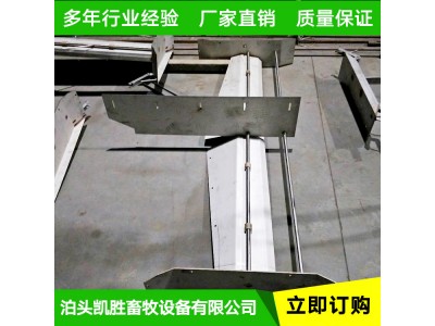 本機(jī)用于網(wǎng)上平養(yǎng)家禽家畜的糞便清理,操作簡(jiǎn)單、方便實(shí)用,是養(yǎng)殖場(chǎng)的理想清糞設(shè)備,刮糞板寬度按客戶設(shè)計(jì)的糞溝尺寸而定。 泊頭凱勝自動(dòng)清糞機(jī)主要由主機(jī)\轉(zhuǎn)角輪\鋼絲繩、刮糞板,控制箱等組成,電機(jī)運(yùn)轉(zhuǎn)帶動(dòng)減速機(jī)工作,通過(guò)鏈輪轉(zhuǎn)動(dòng)牽引刮糞板運(yùn)行完成清糞工作。