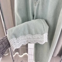溫碧霞代言IRENENA服裝時尚百搭顯瘦蕾絲藍色闊腿牛仔褲