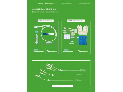 產(chǎn)品基本配置:導(dǎo)管、導(dǎo)引導(dǎo)絲、Y型穿刺針或穿刺針+藍(lán)空針、擴(kuò)張器、單通道延長管、多通道延長管、三通閥、肝素帽、破皮刀。