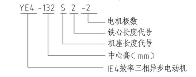 西安泰富西瑪YE4系列超超高效節能三相異步電動機以YE4-132S2-2為例:YE2—電機型號,Y表示異步電動機,E4表示IE4高效率;132—中心高;S—機座長度代號;2—鐵芯長度代號;2—電機極數。