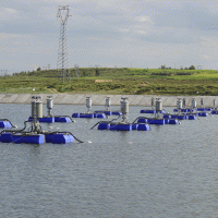 本項(xiàng)目每天蒸發(fā)廢水量約為 2300-2400m³;初步設(shè)計(jì)蒸發(fā)池安裝 30 臺(tái)浮動(dòng)式機(jī)械霧化蒸發(fā)器,浮動(dòng)式霧化蒸發(fā)裝置噴霧范圍直徑大約 10-15m,噴霧高度 2-5m;霧粒度 30-200 微米。單臺(tái)蒸發(fā)器功率 20.7kw(主機(jī)功率 18.5kw;水泵功率 2.2kw),30 臺(tái)蒸發(fā)器合計(jì)總功率 621kw。設(shè)計(jì)浮動(dòng)式霧化蒸發(fā)裝置設(shè)備數(shù)量滿足蒸發(fā)量要求。