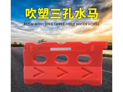 水馬是一種用于分割路面或形成阻擋的塑制殼體障礙物,通常是上小下大的結構,上方有孔以注水增重(故稱水馬,注不可充水的木質或鐵質可移動障礙物稱為拒馬部分,水馬還有橫向的通孔以便通過桿件連接以形成更長的阻擋鏈或擋墻。一般用于道路交通設施,在高速路、城市道路、及天橋街道路口常見